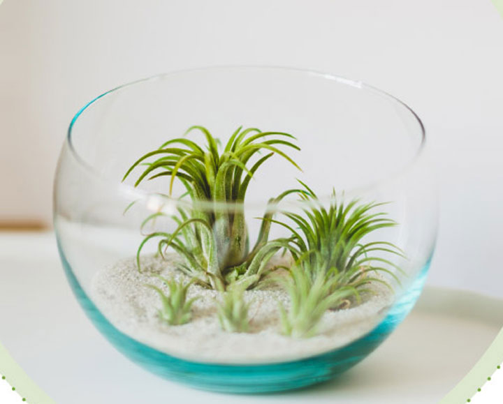 این گیاهان آپارتمانی بسیار جالب هستند، زیرا نیاز به خاک ندارند. اگر دوست دارید، گیاهی نگهداری کنید که به گلدان و خاک و… نیاز ندارد، حتما به سراغ گیاه هوایی بروید. اگر میخواهید آن را در ظرفی شیشهای قرار بدهید، باید سر ظرف یا گلدان باز باشد تا جریان هوا در آن به گردش درآید. گیاه هوایی به نور مستقیم خورشید احتیاج دارد و ۲ تا ۳ بار در هفته باید به آن آب بدهید. برای روی قفسههای تزیینی با پیشخوان آشپزخانه هم دکور بسیار زیبایی است.