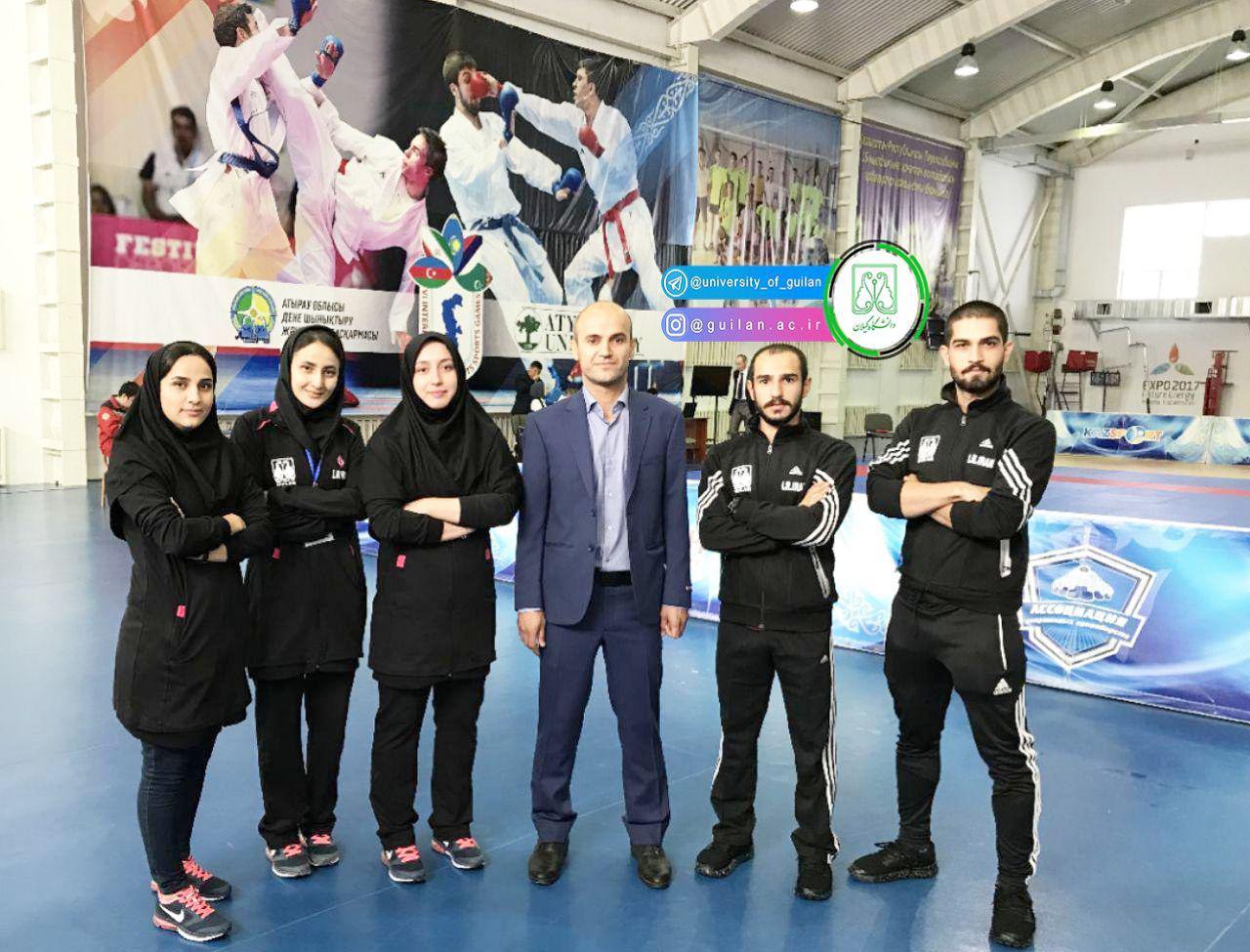 در مسابقات بین المللی کشورهای حاشیه دریای خزر که در قزاقستان برگزار شد، تیم کاراته دانشگاه گیلان مقام نایب قهرمانی را کسب کرد. در این رقابت ها حامد سمیعی نصب ، زهرا پروانه و زینب عزیزی عنوان قهرمانی و مدال طلای مسابقات کاراته حاشیه خزر را کسب کردند.هم چنین سهند صدیقی و شیرین موسی وند دیگر کاراته کاران دانشگاه گیلان توانستند مدال نقره و مقام نایب قهرمانی رقابت های حاشیه خزر در کشور قزاقستان را به خود اختصاص دهند.