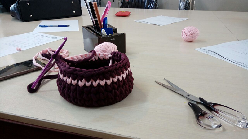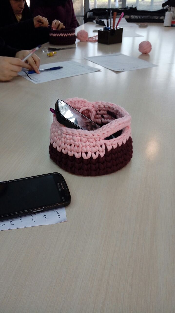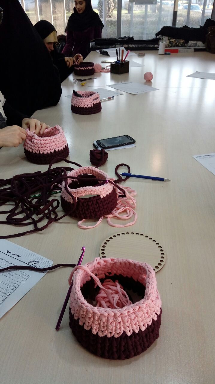 در این کارگاه که پنج ساعت به طول انجامید مدرس دوره خانم فاطمه غلامعلی زاده نحوه ساخت سبد های تریکو را آموزش دادند.